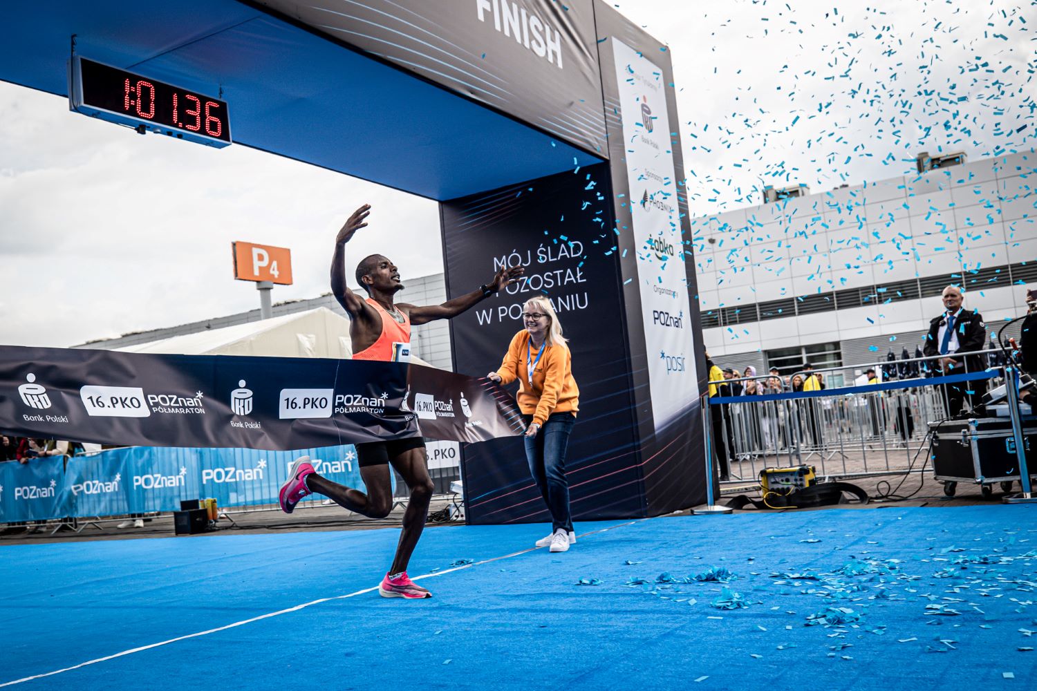 Zwycięzca biegu wbiega na metę